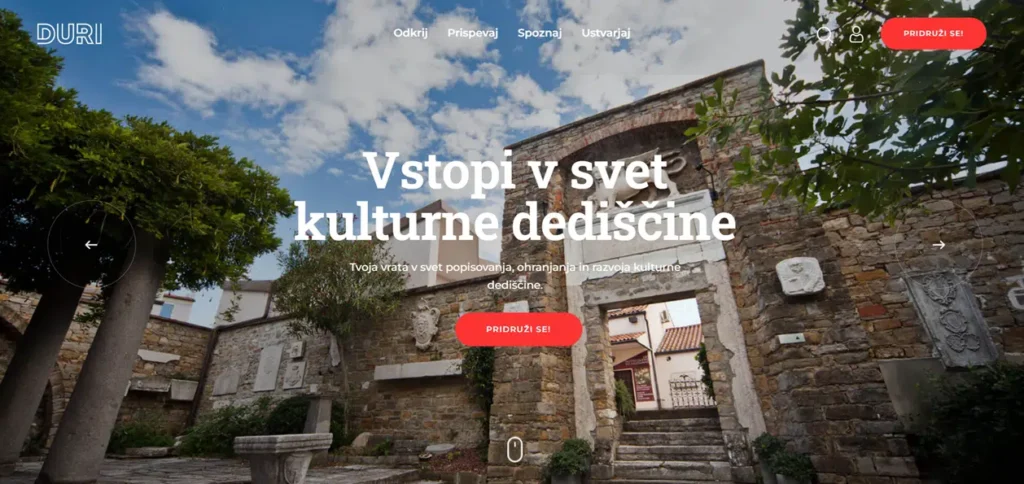 At Idrija 2020 Association, we have been committed to working in the cultural heritage field for many years. We want to contribute to greater recognition and emphasise its importance for society. As a part of the Digital Heritage Incubator project, in cooperation with Zavod Dobra pot and KID KIBLA, we prepared an all-Slovenian heritage platform we named Duri. On May 20, 2022, the Duri website was presented for the first time at a special press conference.