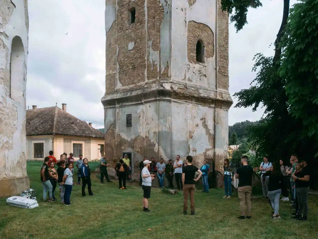 The 3-day master class focused on the revitalization of the village center around the medieval church in the settlement of Kameňany. The course was attended by 40 volunteers from Slovakia, Slovenia, and Romania, who arranged green areas around the church and learned about the traditional approaches of making lime plaster near the parish.The works took place next to the Lutheran church directly in the center of the village of Kameňany, which is part of the Gothic route in the Gemer region. The interior of the Romanesque-Gothic church is painted with medieval frescoes, and the outside is surrounded by a defensive wall. There are other historical buildings belonging to the church nearby.The immediate surroundings of the church needed quite a bit of attention. The participants took care of the cleaning and removal of excess material and the design and replanting of the old flower garden. They used plants suitable for the location next to the monument and typical of the region. Landscape architect Michala Poláková led the arrangement of the external surroundings.Arborist Marek Áč led the pruning of linden trees near the church, which threatened the monument. On the second day of the workshop, the participants also planted a new linden tree in a more historically suitable place.At the facility near the church, the participants tackled lime plasters. With Viera Kozárova, they learned how to slake lime, prepare the base layer on the wall, mix plaster the old way, and use traditional materials.The application of lime plasters varied considerably in different historical periods. Under the leadership of restorer Juraj Gregorek, they tested Gothic, Renaissance, and Baroque techniques as well as techniques from the 19th century.The participants could also try Renaissance painting with different techniques and the preparation of natural pigments.On the last day of the course, the participants went on a tour of selected parts of the Gemer region.During the course, the participants were accommodated in a former Franciscan monastery from the 18th century, which today represents the cultural and creative center of the nearby town of Rožňava.The rejuvenation of the center of the village of Kameňany represents great progress in relation to heritage, environmental protection, and improved quality of life for the local population. The inhabitants of the village also participated in the renovation to a large extent, they acquired key knowledge and skills to maintain the surroundings of the heritage buildings in the same way in the future.