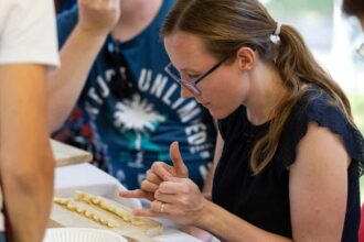 Z razstavo zaključujemo večmesečno sodelovanje z gimnazijo v okviru projekta Idrijska rudarska hiša – šola trajnostnega stavbarstva. Tako smo z dijaki do potankosti spoznali tradicionalne rudarske hiše, se naučili o življenjskih razmerah v rudarski Idriji nekoč, odkrivali prednosti gradnje z naravnimi materiali ter dediščino izkoristili kot navdih za ustvarjanje.